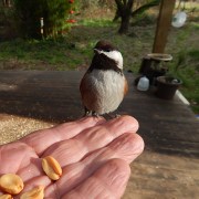 Different birds have different ways of showing their friendship with their human friends. A bird may come when we call it. A bird may call us. A bird may follow its human friend around the yard. A bird may feed from the hand of a human friend. A bird may sing “whisper songs” to a human friend. A bird may come to the human who fills the feeders to tell them when the feeder is empty – it may even come up to the window to try to get the attention of a human friend it sees inside the house. Some birds, especially crows, give tiny gifts – coins or keys or little plastic toys – to people who feed them.