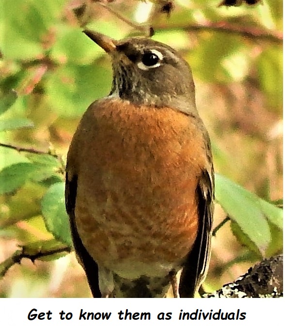 We may think that a bird doesn’t like us if it flies away at our approach. We may think the robin running across the lawn isn’t “friendly” because he won’t come close to us. But that doesn’t mean he doesn’t like us. He learned from his parents to stay just this far from the humans. He feels safe at the proper distance.