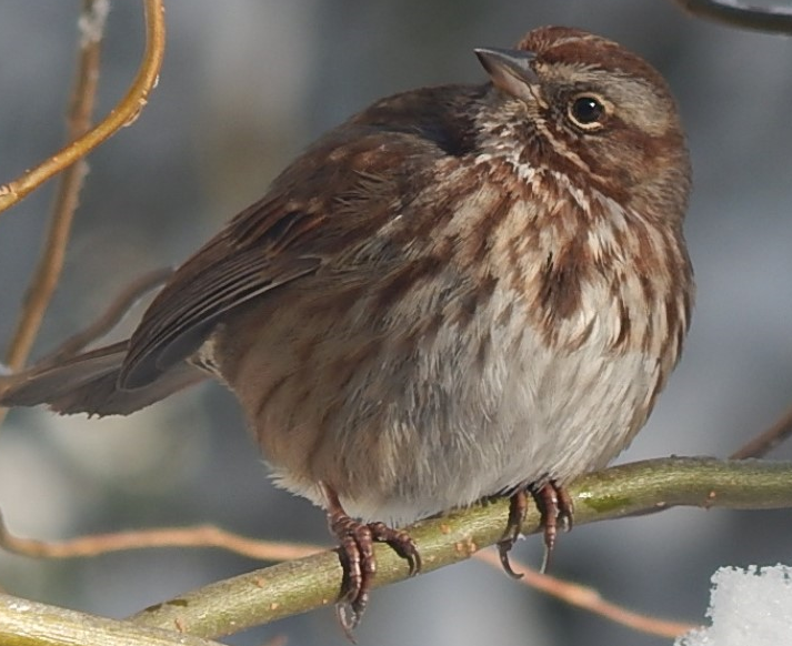 Though many of us feed birds, the birds don’t really need our food to survive. Much more important for their survival is habitat – places where they can live and raise their babies. There are easy ways we can create a little bit more habitat. For example, instead of removing fallen leaves, we can leave them for the birds. Dead leaves attract insects for thrushes and other birds to eat. Piles of cut branches make insect-hunting ground for wrens. A hollow tree provides a place for flickers, owls, and bluebirds to raise their babies. Grass grown without chemicals lets robins hunt worms and bugs without being poisoned, and grass left unmown can provide food and nest sites for ground-feeding and ground-nesting birds, and “weeds” on the lawn can feed birds with their seeds.